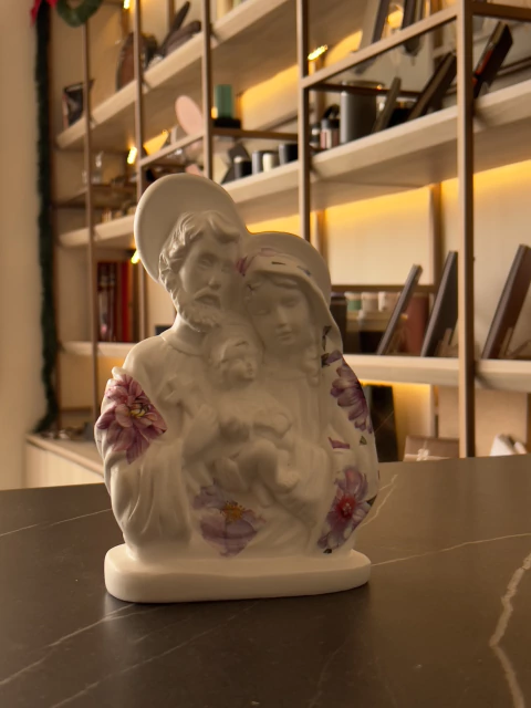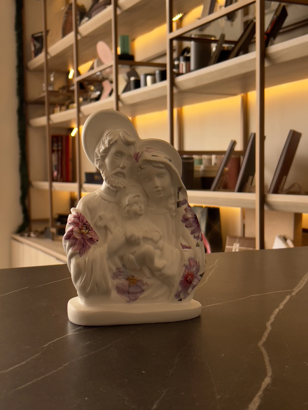 Sagrada Família em Gesso Branco com Flores e Detalhes 20cm: uma peça que irradia fé e beleza em cada detalhe. Com acabamento delicado em dourado e flores que simbolizam pureza, esta escultura é perfeita para iluminar seu lar ou presentear com significado profundo. Ideal para momentos de renovação espiritual e proteção, ela traz uma aura de paz e inspiração divina. Uma escolha encantadora para quem valoriza arte e devoção.